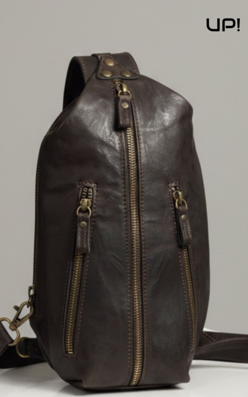 Tracolla monospalla in pelle nappa vegetale D-brown oyster | UP024