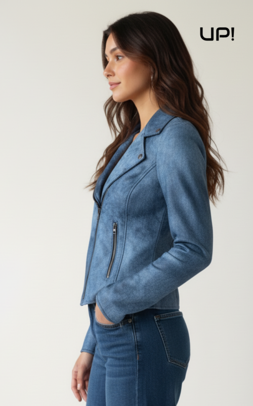 Giacca Chiodo Biker Donna in Nappa Nuvolato Blu | Jerry UP224