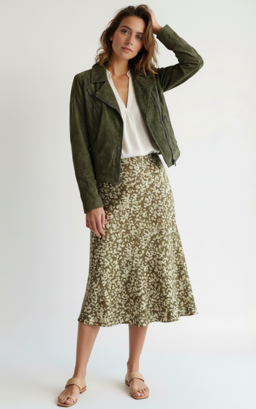 Giacca Chiodo Biker Donna in suede verde | Jerry UP223