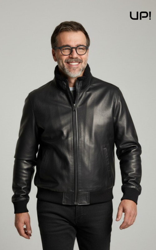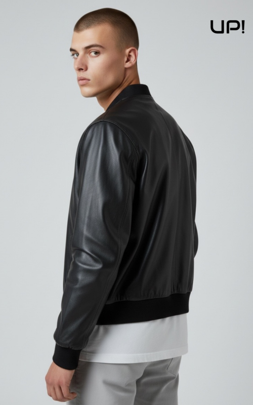 Essenziale, raffinato e incredibilmente versatile, il bomber UP008 in pelle nappa naturale nera rappresenta l’evoluzione luxury del classico bomber modello felpa.