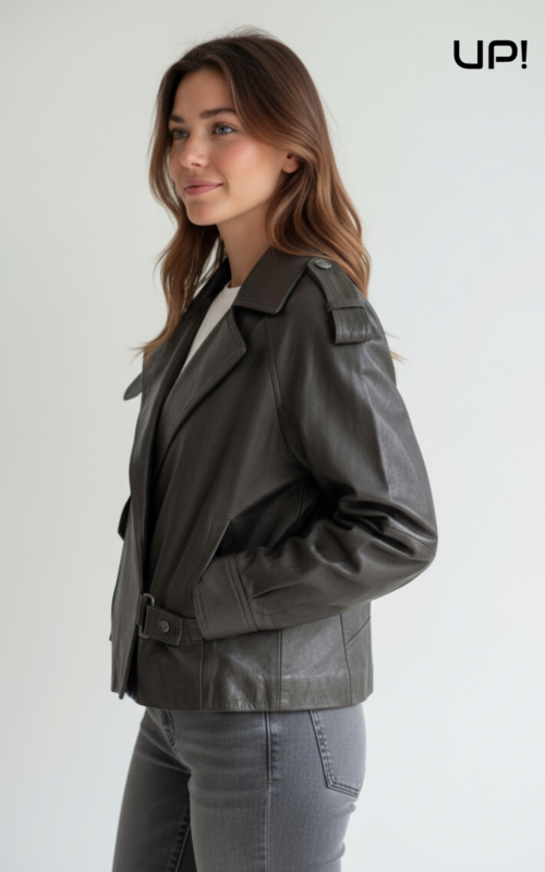 La giacca chiodo biker donna Jerry UP201 è un’icona di stile reinterpretata con sensibilità contemporanea. Un capo in pelle premium pensato per una donna che ama linee pulite, materiali autentici e uno stile deciso ma mai eccessivo.