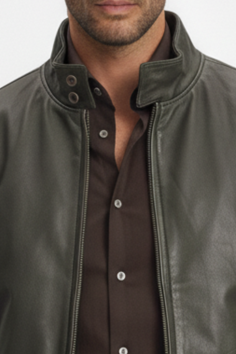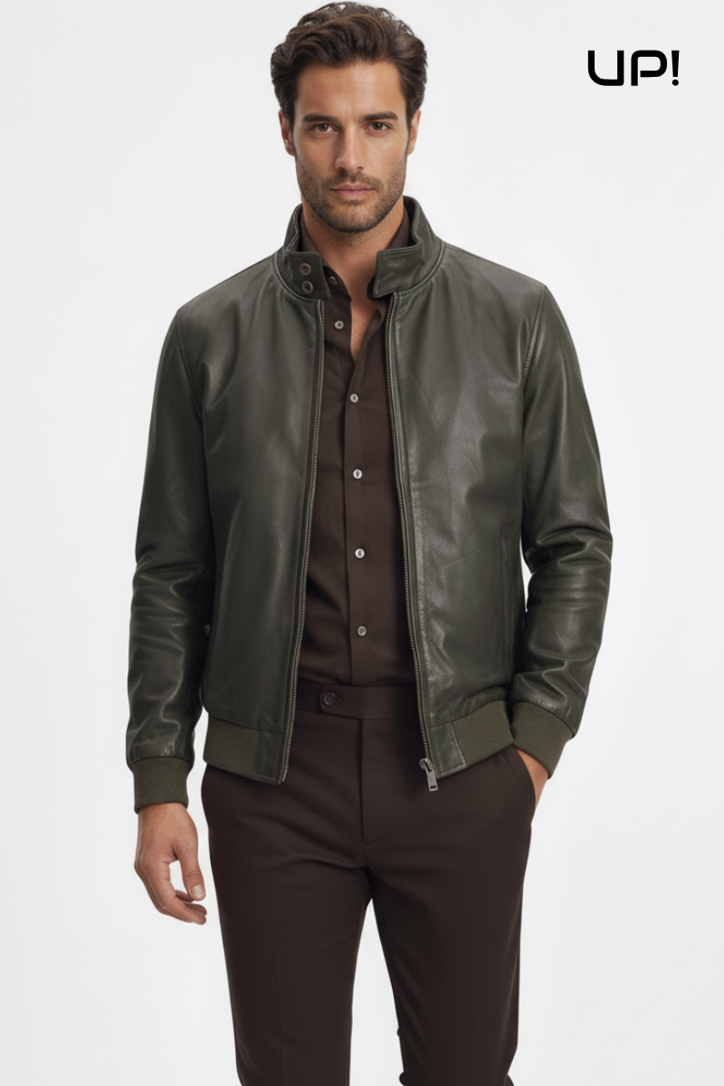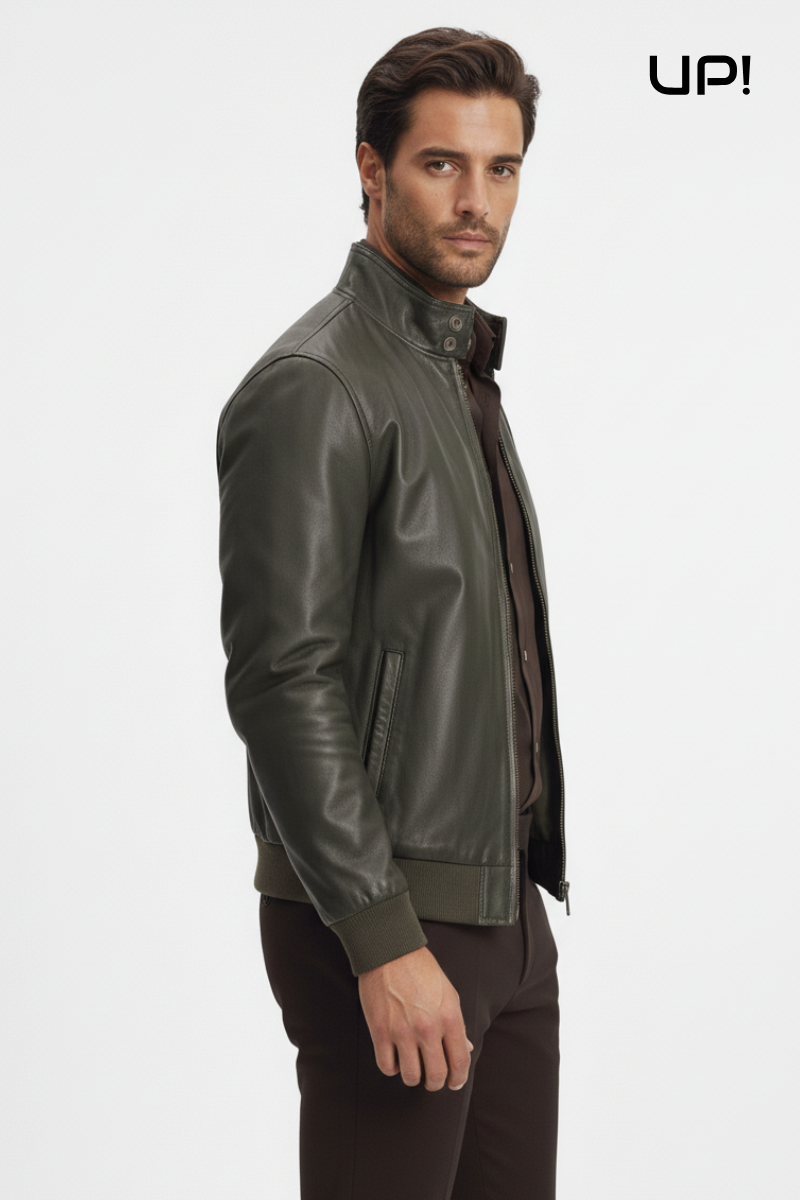 Realizzata in vera pelle nappa naturale di alta qualità, la giacca in pelle uomo Roger UP si distingue per la sua morbidezza straordinaria al tatto, la grana fine e l’aspetto autentico che solo una lavorazione artigianale accurata può garantire. Il colore Olive Green, raffinato e versatile, dona personalità al capo e lo rende ideale per chi desidera un’alternativa elegante ai classici colori neutri, senza rinunciare alla facilità di abbinamento.