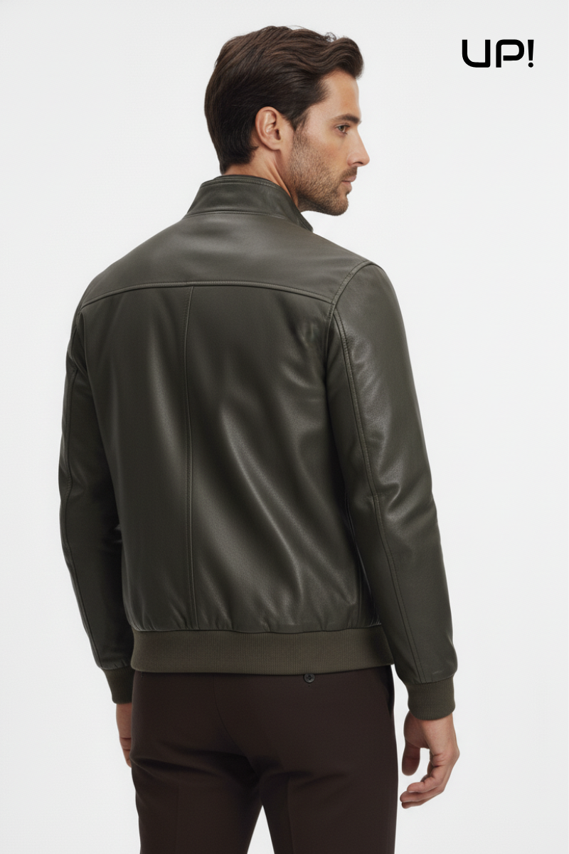 Giacca in Pelle Uomo Roger UP in Nappa Naturale Olive Green – Artigianalità e Stile Senza Tempo