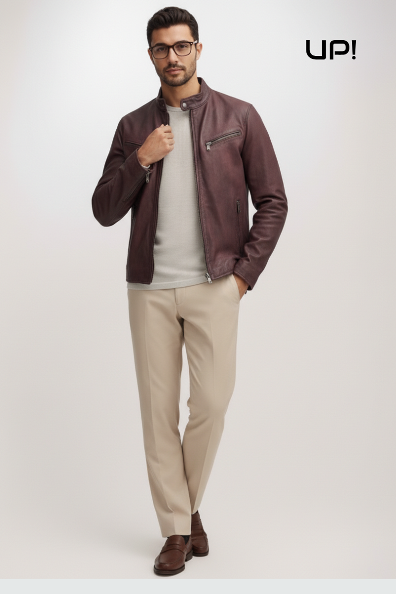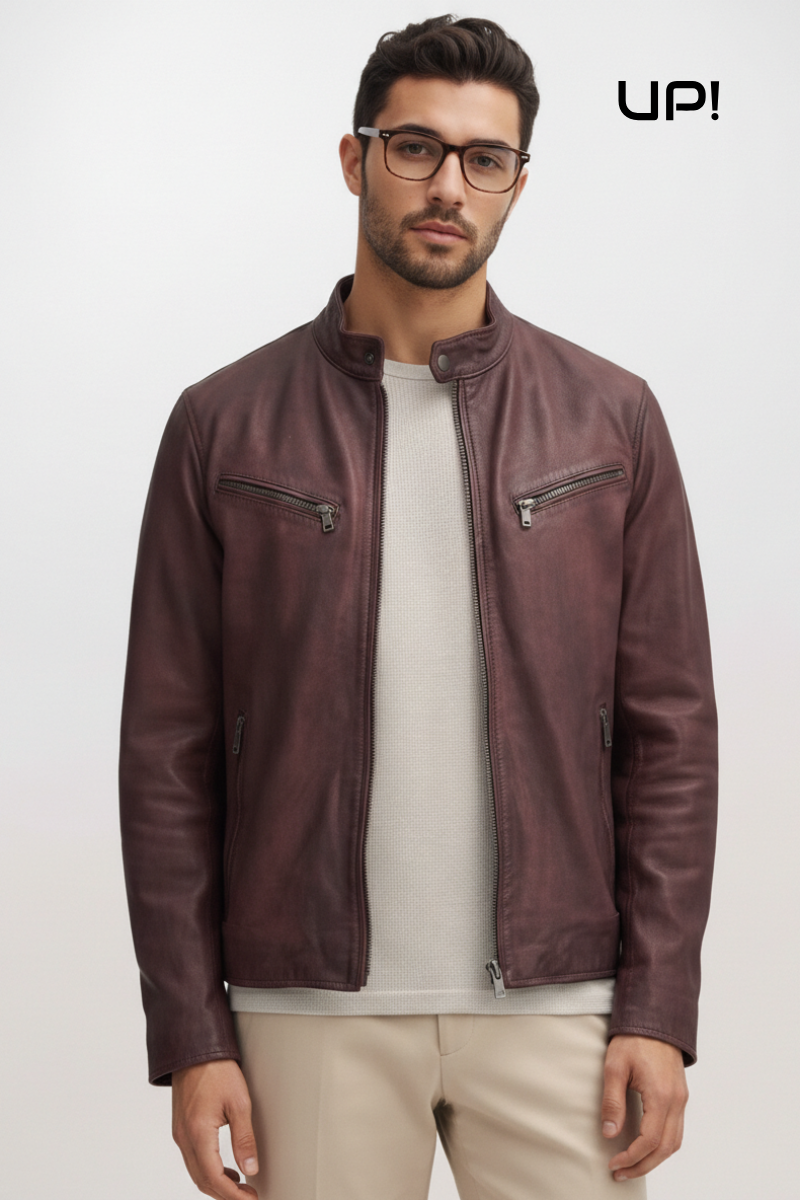 Il Runner UP033 è una giacca da uomo dal design essenziale e contemporaneo, realizzata in Denver Oil color castagna, una pelle dalla texture intensa e dall’aspetto naturalmente vissuto. Un capo pensato per chi ama linee pulite, materiali autentici e uno stile versatile, adatto sia alla quotidianità sia a contesti più curati.